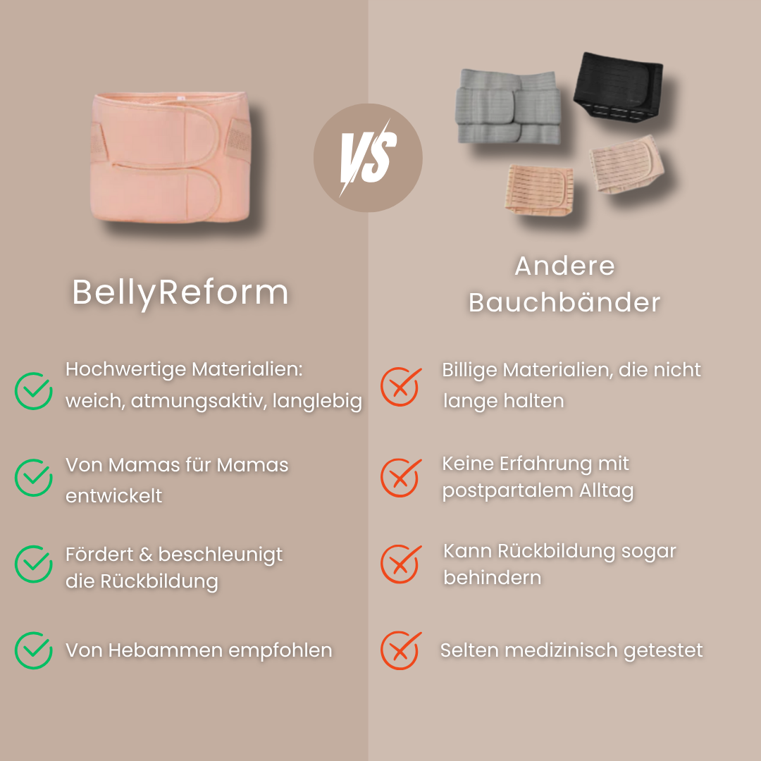 Vom Stillen über das Spazierengehen bis hin zum Wäscheaufhängen - alles fühlt sich nach der Geburt wie eine körperliche Belastung an. BellyReform wurde gemacht, um genau diesen Alltag leichter zu machen. Mehr Halt. Weniger Schmerzen. Und vor allem: Ein Körpergefühl, das sich wieder gut anfühlt.