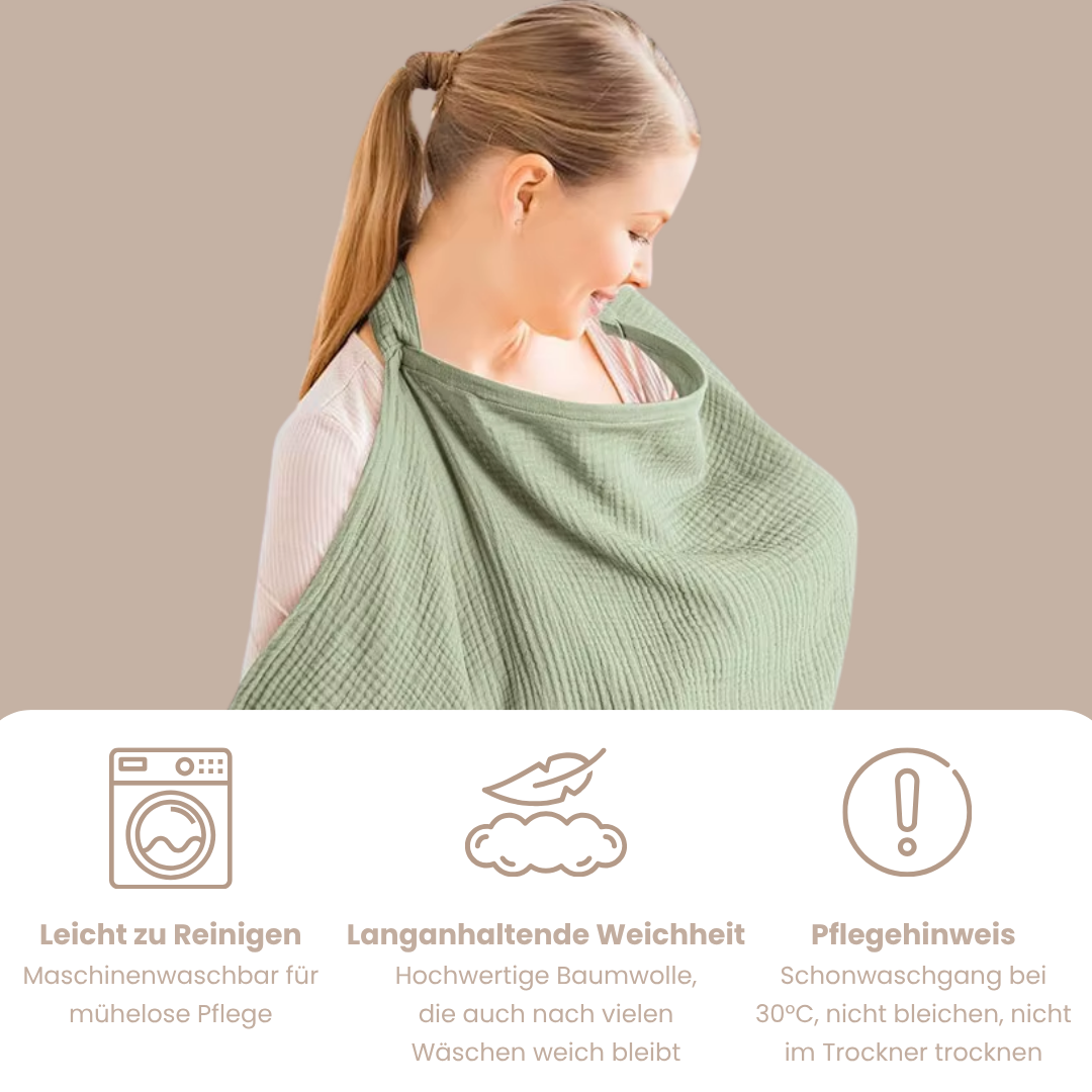 Der MamaHaven™ Nursing Shawl wurde speziell für moderne Mamas entwickelt, die Privatsphäre, Komfort und Nähe zu ihrem Baby gleichermaßen schätzen.