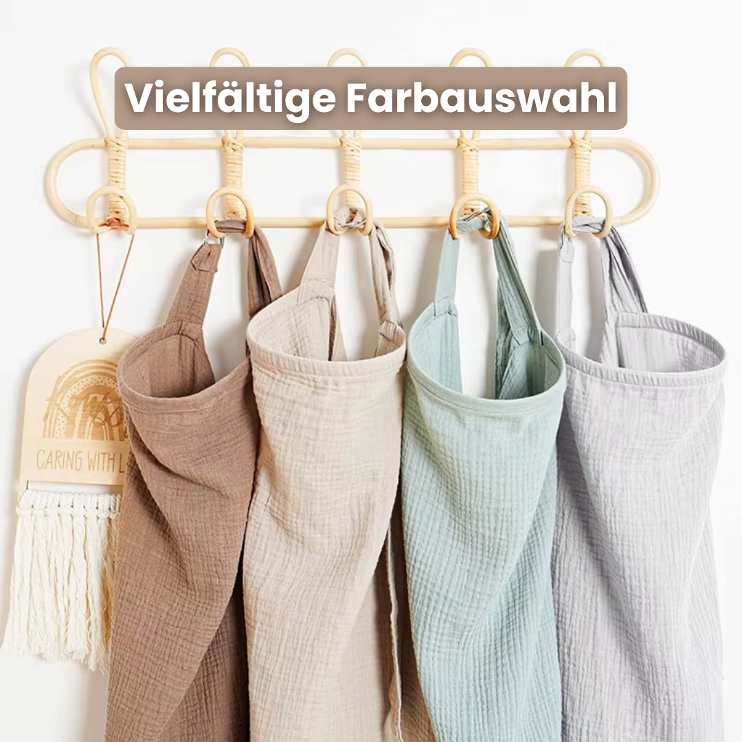 Gefertigt aus hochwertiger, atmungsaktiver Baumwollgaze schmiegt sich der MamaHaven sanft an deine Haut und die deines Babys – weich, luftig und angenehm kühl, selbst an warmen Tagen.