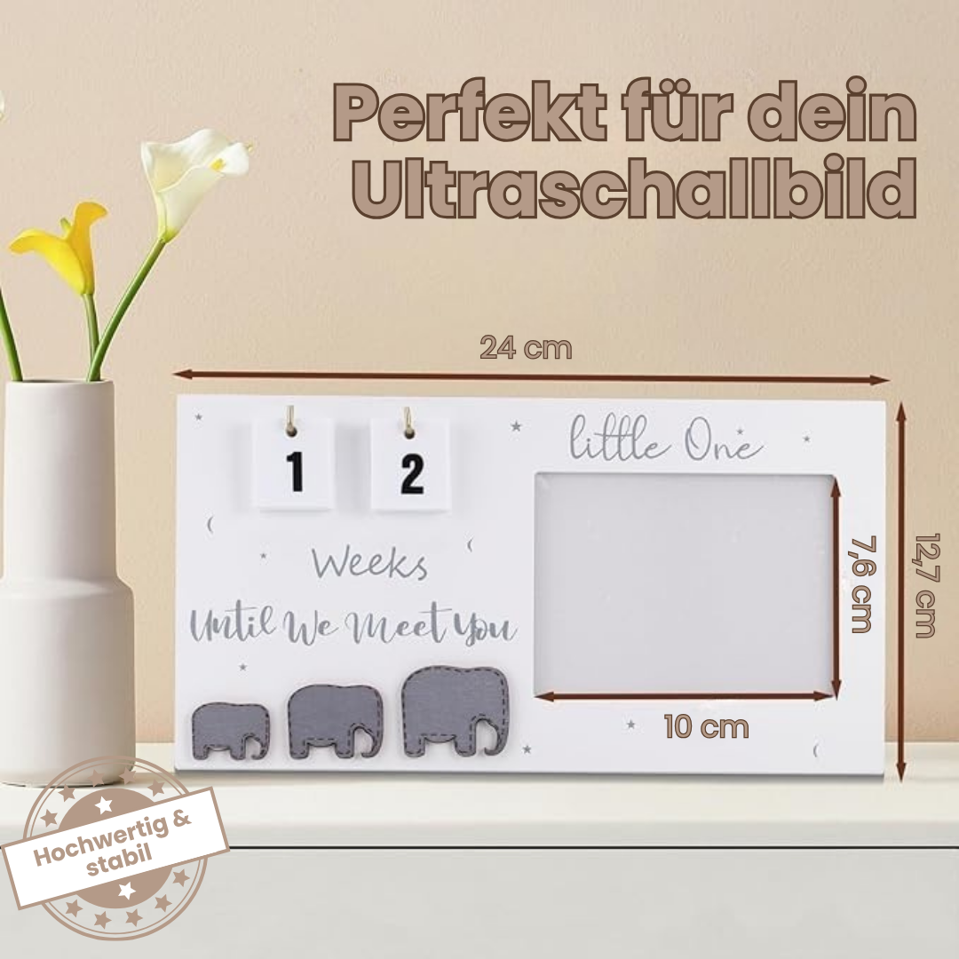 Du hältst zum ersten Mal dieses kleine, verschwommene Ultraschallbild in der Hand – der allererste Beweis, dass da wirklich ein kleines Leben in dir wächst. Du willst es schützen, präsentieren, irgendwo hinstellen… aber jeder Rahmen wirkt austauschbar, unbesonders, lieblos. Du legst das Bild in eine Schublade, weil du keinen schönen Platz findest. Du denkst dir: Das ist doch DER Moment! Warum fühlt sich das so „normal“ an? Und dann kommt die nächste Woche… und wieder eine. Die Vorfreude wächst – aber irgendwie geht dieses Gefühl im Alltag unter. Du willst jede Woche festhalten, miterleben, für immer erinnern… aber es fehlt etwas, das diese Zeit richtig würdigt.